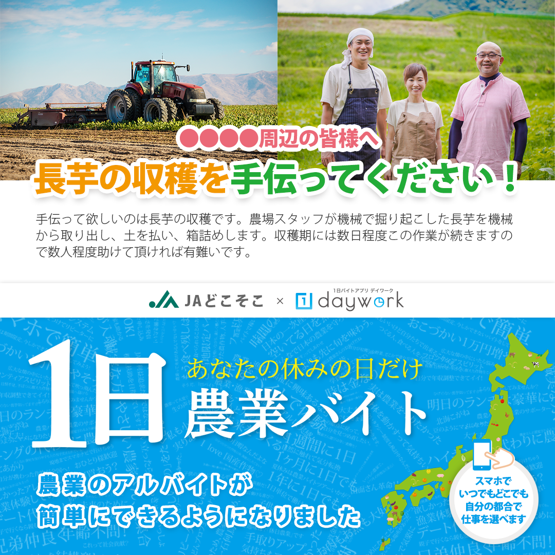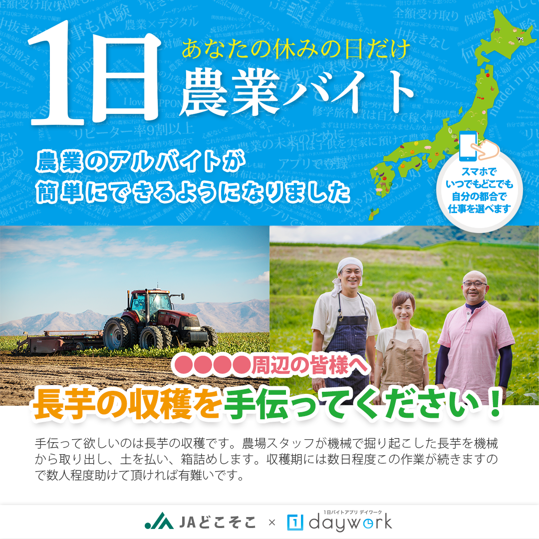 その「daywork」のFacebookに掲載するための広告デザインとして作成しました。下のデザインは翌年に予めバリエーションを用意して選びやすいようにデザインを変えたものです。