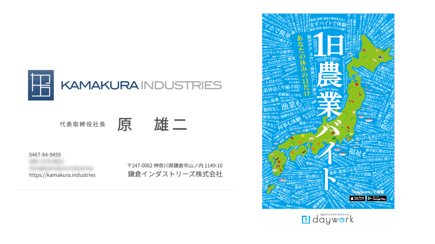 アプリの開発やwebを利用したサービスを展開するKamakura Industries株式会社様の名刺です。