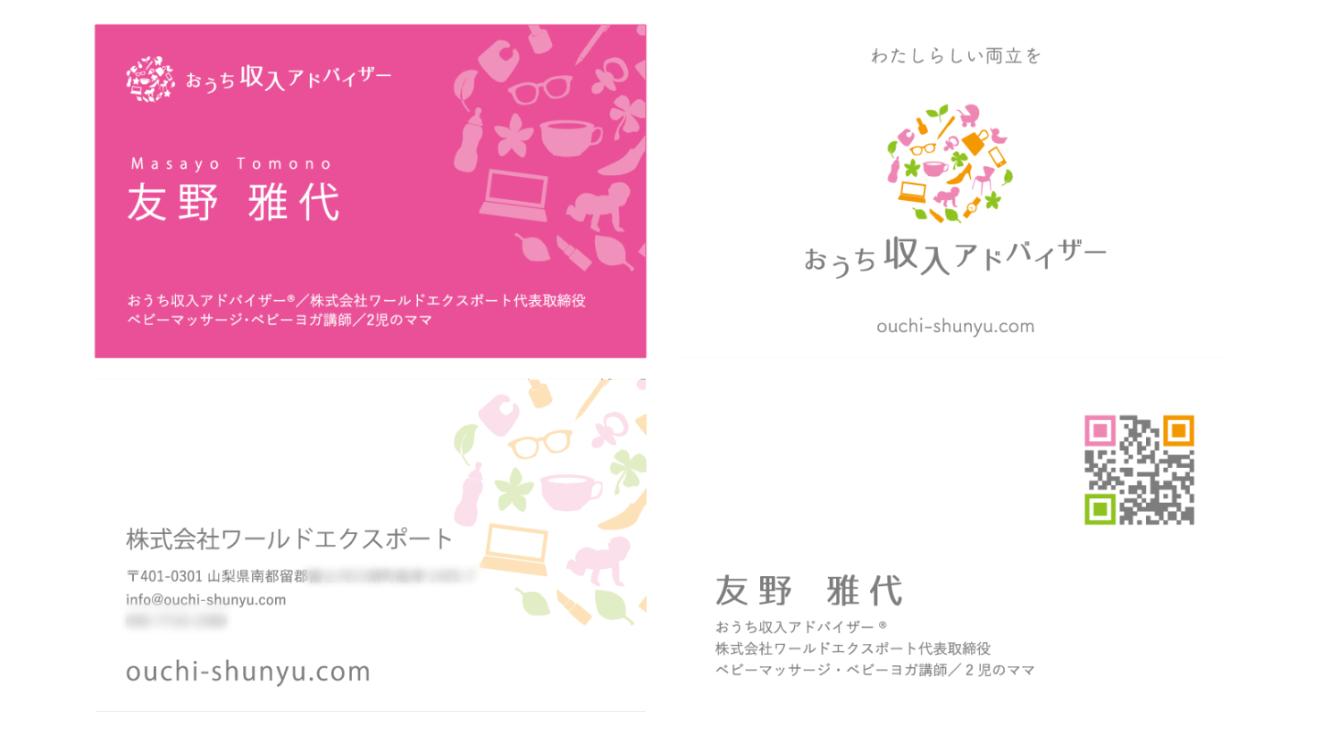 おうち収入アドバイザー®友野雅代様の名刺です。