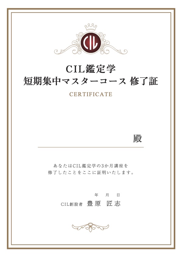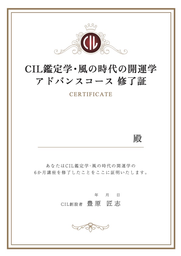 株式会社おしるこ様のサービスである風の時代の開運学®。こちらの鑑定学の講座を受講した方用の修了証です。