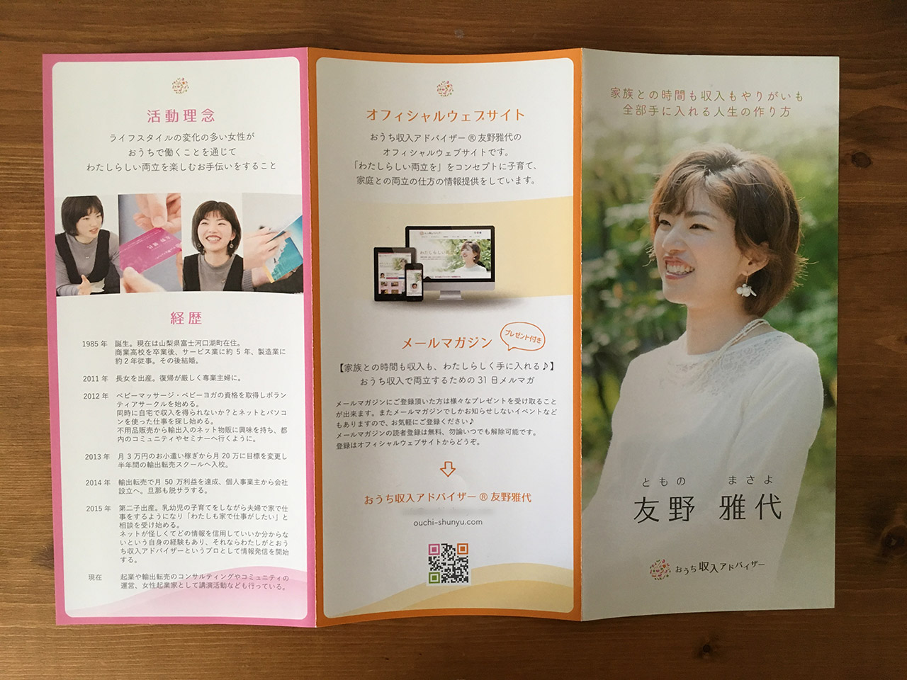 おうち収入アドバイザー®友野雅代様のパンフレットです。