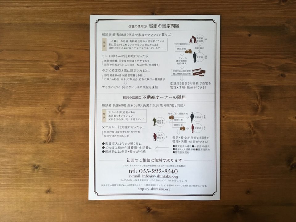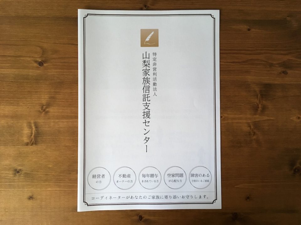 特定非営利活動法人 山梨家族信託支援センター様のパンフレットです。