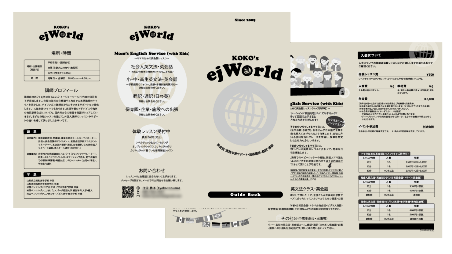 山梨県の南アルプス市で英語教室をしているKOKO’s ejWorld様のパンフレットです。